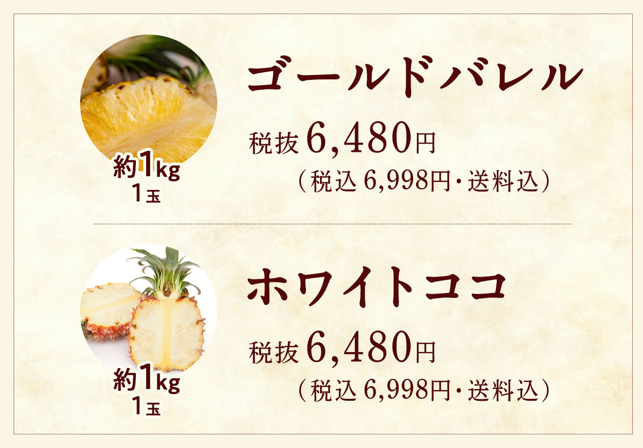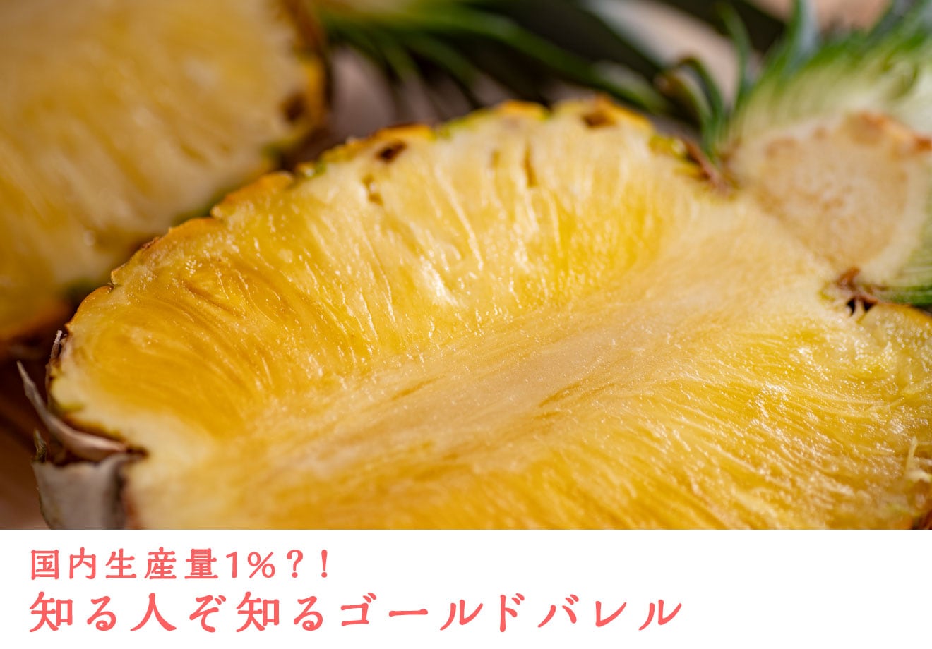 パインの中でも特に栽培が難しく、市場でもなかなかお目にかかることの少ない品種です。 実の色が黄金色(ゴールド)、形が円筒形で樽(バレル)に似ていることから「ゴールドバレル」の名が付けられました。パイン農家も驚くほどの上品な甘みをお楽しみください!