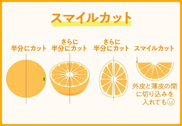 見た目は必ずしもいいとは言えませんが、それは露地栽培で太陽の光をたっぷり浴び、風雨にさらされて栽培されたから。薄い皮のギリギリまで果肉がぎゅっと詰まっているので、スマイルカットでどうぞ。