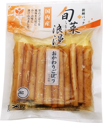 国産の若採りごぼうの薄皮を残して乳酸発酵し、旨みを引き出してあっさりとかつおしょうゆ味で漬けました。ごぼう本来の風味が生きており、ついついおかわりしたくなるおいしさです。 ■お召し上がり方