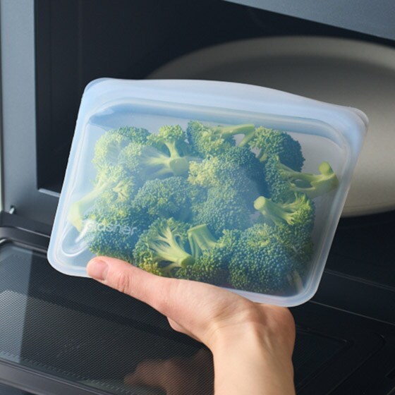 電子レンジ、オーブン、湯せんでの調理、冷蔵、冷凍での保存、ポーチとしての使用など幅広くお使いいただけます。食洗器での洗浄が可能です。 |