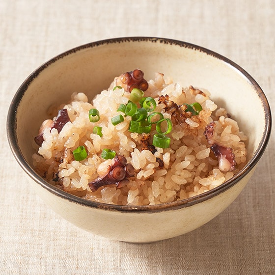 炊飯器でかんたんに、たこの風味が豊かな、炊き込みごはんを食べていただけます。ご家庭の炊飯器によりますが、炊き込みごはんモードにしていただくと、おこげも召し上がっていただけます。 ■少し固めの炊きあがりです。