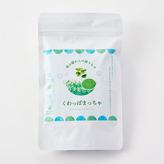 山梨県の専用農場で栽培期間中農薬を使わずに育てられた桑葉を使用。桑は古来より健康を大事にする方々のサポート素材として愛されてきました。苦みがやさしいまろやかなやさしい味わいは、水やお湯で溶かしても、牛乳や豆乳等のラテにしても楽しめます。 鮮やかな緑色とクセのない味わいで、ロールケーキやクッキー、パンケーキ等のお菓子作りにもおすすめです。焼酎と割ってもおいしい「大人のくわっぱまっちゃ割」に。嬉しいノンカフェイン。 食物繊維や、ミネラル類(カルシウム、鉄、亜鉛、マグネシウム、カリウム等)、ビタミン類(ビタミンB1、B6、E)、有用成分(ポリフェノール、ルチン)等、様々な栄養成分が含まれており、毎日の栄養サポートにもおすすめです。 ■日本茶製法でまろやかな風味