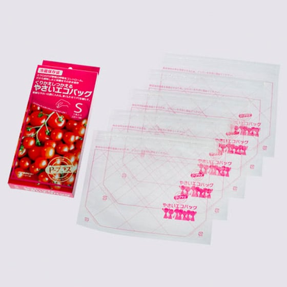 野菜は収穫後も呼吸しています。P-プラスにはミクロの穴が加工されており、バッグの中を「低酸素、高二酸化炭素」の環境で呼吸量を抑えた「冬眠状態」にさせることで鮮度を長持ちさせます。 洗ってくりかえし使えるので経済的、冷蔵庫の野菜室を小分けにすっきりと収納できます。 大きさ:220mm×180mm |