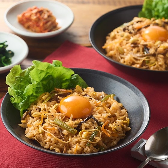 炊飯米360gに汁気を切って本品1袋とビビンバの具を混ぜあわせてお召し上がりください。 具には味がしっかり染みこんでいますのでお好みでごはんの量を調整してください。 またフライパンで炒めて石焼ビビンバ風にしてもおいしくお召し上がりいただけます。 トッピングにお好みでキムチ・卵・カルビをいれるなどアレンジも楽しめます。 |