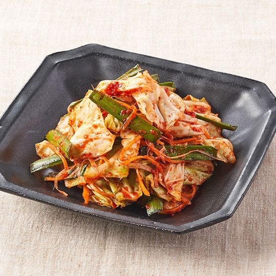 コッチョリのコッは韓国語で「表面」「外面」、チョリは「漬けること」「漬けたもの」でコッチョリキムチとは「即席サラダキムチ」を意味します。 生野菜をキムチの素に混ぜ合わせるだけですぐにキムチをお召し上がりいただけます。