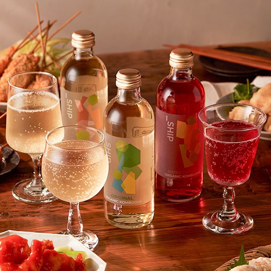日本で初めて有機JAS認証を取得した日本のコンブチャブランドです。 非加熱製法にこだわったコンブチャ専用ブルワリーを持ち、創業以来、管理が難しい『SCOBY(スコビー)』を継代培養しています。 『SCOBY(スコビー)』は、酢酸菌と酵母由来の菌や膜の集合体で、紅茶や緑茶に砂糖を加えて発酵させることで酸味と微炭酸が感じられる酵素ドリンク「コンブチャ」が作られます。 「_SHIP」では、廃棄物をただのゴミとしてではなく、新たな価値を生み出す資源として捉え、製造過程で出る茶葉や果物の搾りかすを、堆肥化して畑の肥料として活用しています。 また、製造の段階で排出される水蒸気や排水も、配管をループさせることにより冷えた水蒸気(水)を循環させることで、水資源を再利用する循環型システムを導入しています。 確かな味わいはもちろんのこと、人にも自然にもやさしいサステナブルなものづくりを実践しています。