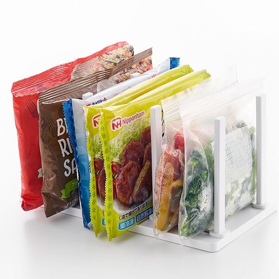■冷凍庫の食品を立てて整理できる冷凍庫中収納スタンドです。
