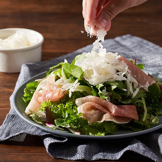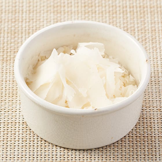 まずはそのままフワフワ食感をお楽しみください。サラダやサンドウィッチの他、熱が加わるととろけるので、パスタやスープの仕上げはもちろん、ゆでたジャガイモやトースト等風味を損なうことなく様々な料理にお使いいただけます。 |
