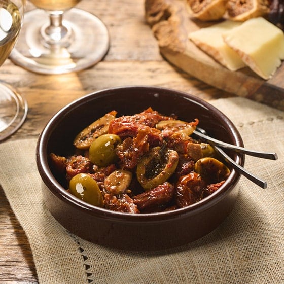 そのまま前菜として。冷たい白ワインやスパークリングワイン、軽やかな赤ワインと相性抜群。グリーンサラダに加えて彩りと旨みをプラス。ブルスケッタやピザのトッピングにもOK。 |