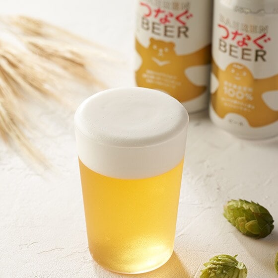 岩手県はホップの生産量日本一ですが、同じくビール原料である麦芽は多くを海外からの輸入に頼っている状況です。この商品では、県産の大麦を使い100%岩手県産原料のビールを製品化することで岩手に新たな循環を生み、農地荒廃などさまざまな課題を解決することを目指しています。種子から大麦の生産者、ホップ農家、岩大クラフトビール部、製麦メーカー、ブルワリー、そしてこのつなぐビールを飲む皆さま、かかわる人すべてが主人公となって完成する、「私たちの」ビールです。 原料となる麦芽とホップは100%岩手県産のこだわり。麦の穏やかでやさしい甘味、特別な製法で抽出したホップ由来のさわやかな柑橘香がぎゅっと詰まっています。 これは単なるクラフトビールではなく、岩手の農業を守り続けるチャレンジであり、岩手の想いを未来へつなぐという決意表明でもあります。「安いから」ではなく「未来につながるから」選ぶ、皆さんの乾杯で一緒に岩手を元気にしませんか? ■お召し上がり方