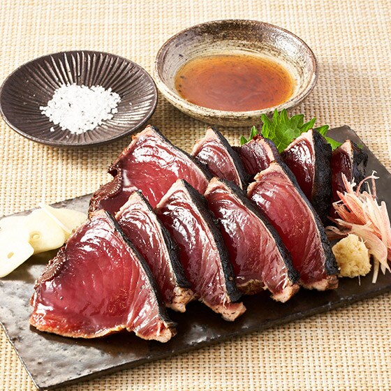 高知県大方町の美しい海の水を汲み上げ、職人が手づくりした美味しい天日塩をつけました。かつおの旨味を引き立たせます。 ■お召し上がり方