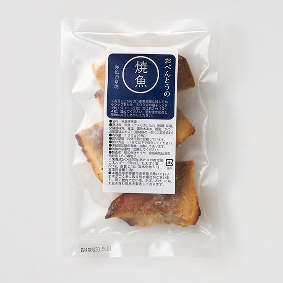 | 原材料 | 赤魚(アメリカ)、たれ(砂糖、味噌、発酵調味料、食塩、還元水あめ、糖蜜、かつお節調味エキス)、(一部に大豆を含む) |