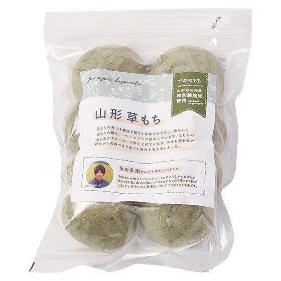 山形県のよもぎを100%使って作った草もちです。もち米には多田さんのつくった“でわのもち”を使っています。あんこと一緒に香りのよい草もちをどうぞ。 ■多田さんの“でわのもち”のみを使用