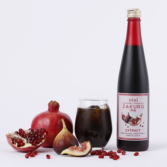 ペルシャで古くから愛される“奇跡の果実”をザクロとイチジクを、nini独自の熟成発酵技術で高濃度エキスに仕上げました。空気を好む酵母菌を毎日ていねいに撹拌しながら長期熟成をおこなっています。砂糖を一切加えず、果実が本来もつ天然の糖と酵母の働きだけで発酵を促す技術は特許出願中です。