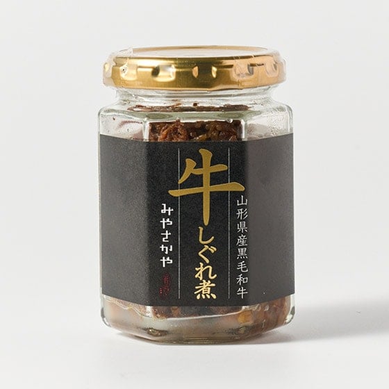 山形県産黒毛和牛をふんだんに使用した創業170余年老舗「みやさかや」の熟練の職人がていねいに炊き上げた牛肉のつくだ煮です。 使用する牛肉はロース、モモ肉、バラ肉などを組み合わせ、赤身と脂身のバランスを調整し、食べ飽きない味わいに仕上げています。 味付けは濃くしすぎず、上品な味わいに仕上げることでお肉本来の旨味感じられる商品です。 また、ピリっとした国産山椒の風味と隠し味のワインの旨味が上品ながらも食欲をわき立たたせます。 ■手間ひまかけた調理法