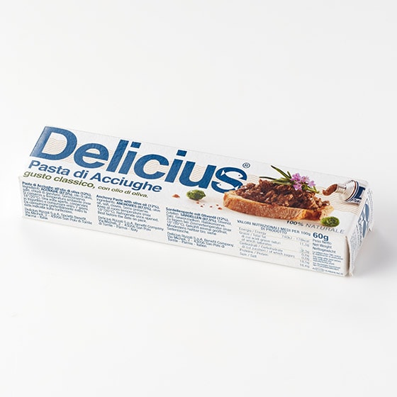 Deliciusは1973年に創業しイタリアのパルマに本社を置く魚介類保存業界のリーダーカンパニーです。彼らのアンチョビはシンプルな素材で作るからこそ細心の注意を払うという情熱と哲学によって作られ、そのおいしさはイタリア国内のみならず海外にも多くのファンを獲得、評価を得ています。漁はアドリア海を中心とした地中海でおこない、アルバニア共和国に設けている工場で素早く加工。現在でも、昔と同様に、4月から9月にかけて夜が深い、いわゆる「ノッティ・ディ・スクーロnotti di scuro」(暗い夜)に、海と海底に配慮した網を取り付けた伝統的な漁船で漁獲されます。アンチョビはすぐに下処理をする必要があり、獲れてから6時間以内に処理され大きな木樽の中に、塩の層に覆われ安置、旨みを引き出します。年月を経ても、古典的な製法を守り、かつ完成までの各フェーズは全て長年の経験で培ったノウハウを持つ優秀な担当者たちによって綿密に管理されその品質を維持し世界に発信しています。
