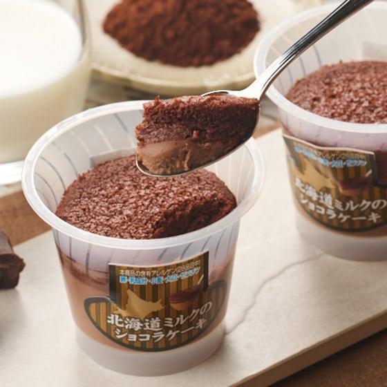北海道原料を使用したふんわり食感のチョコスフレと、なめらか食感チョコプリンの2層仕立て。 1度に2度おいしい味わいと食感の違いをお楽しみください。 ■工場独自製法の2層仕立て