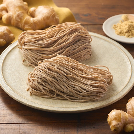 北海道産小麦粉を2種類ブレンドし、香りとコシを引き出した麺に、金時生姜粉末をていねいに練り込みました。 小麦本来の甘みと深い旨み、そして金時生姜ならではの上品な辛みと香りが噛むほどに広がります。 ほっと温まる一杯としてはもちろん、鍋のスープを生姜の香りが味を整える、締めにも最適な中華麺です。 ■中華めんへの金時生姜粉末の練り込みによる味わいの広がり