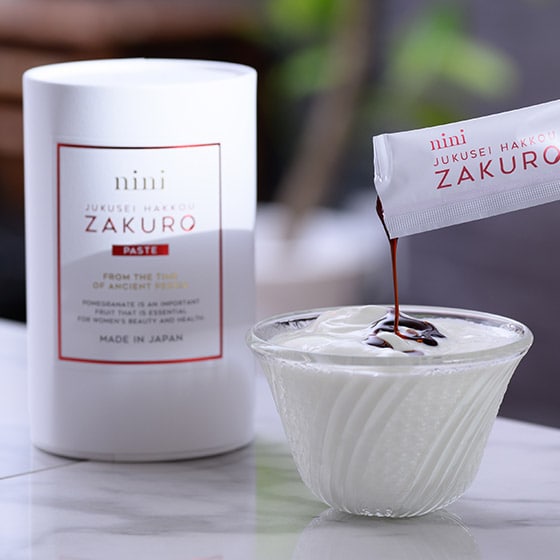 発酵を促す際は砂糖類を使用することがありますが、niniは「ザクロ本来のパワーを届けたい」という思いから、糖分を一切配合しませんでした。 試行錯誤の末、デーツのみで発酵させることに成功。こうして生まれた「nini 熟成発酵ザクロペースト」には、約2億個の酵母が含まれています。 nini 熟成発酵ザクロペーストのまろやかな甘みは、まさに発酵のチカラによるものです。