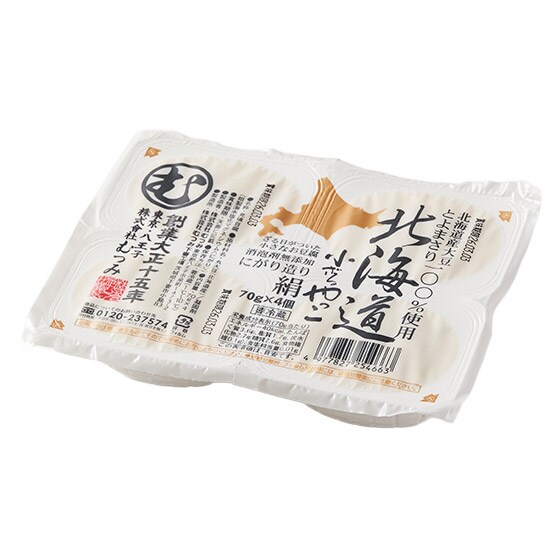 創業100年余りの老舗豆腐メーカーの造る、消泡剤不使用、海水にがりだけで寄せたなめらかでやさしい食感。北海道で育ったとよまさり大豆は、甘みとコクのバランスがよく、豆本来の風味が特長です。見た目もきれいで、醤油のタレがのり易いざる目パックを使用。大豆の甘みがやさしい口あたりのお豆腐です。一個70gの食べきりサイズで食卓の「あと1品」にも大活躍。 ■小分けタイプ、手軽さとおいしさの両立