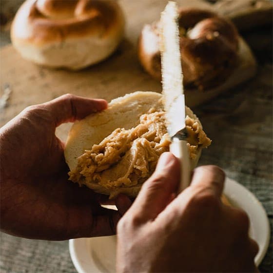毎日食べても飽きないもの。おとなもこどもも、みんながいつでもおいしくたのしめる「ピーナッツバター」。国内のつくり手が手がけるこだわりの素材。たっぷりと塗って食べてほしいから、軽めのテクスチャーでシンプルな味わいに仕上げました。