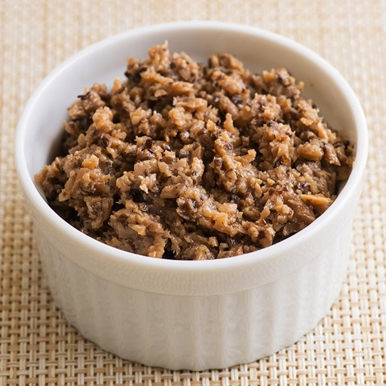 化学調味料、動物性原料不使用なので少しポロポロしています。バゲットにそのままのせて食べたり、パスタやリゾットのソースとして使えます。うまみと香りが強いので、「万能椎茸うまみ調味料」的に、みそ汁のダシの代わりに使ったり、巻き寿司の具や卵焼きの具にも相性抜群です。 |