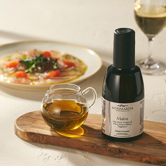 ソンマリーヴァはリグーリア海岸、ジェノヴァとニースの間に位置する地で100年以上の歴史を持つ家族経営の会社。原料は自社の有機農場で栽培し、西リグーリアの伝統製法に則りオリーブオイルを生産しています。マイナは酸度を低く抑えるため、実が完熟する手前、11月頃に収穫、圧搾をおこなうため標準酸度は0.2-0.3%。エクストラヴァージンオリーブオイルの規格は酸度0.8%以下ですのでこの点も特長的です。畑は標高500mの山の斜面!リグーリアの地形を活かし空気が澄んだ美しい山々に囲まれ育った高品質のタジャスカオリーブが原料です。効率化が進んだ現代においても品質を損なうことなく追求したコールドプレスでていねいに絞る製法は家族の強いこだわりポイント。最高品質のオイルを、開けた後も酸化しにくい再充填防止キャップと遮光性の高いガラス瓶、本来の味わいの内に使い切りやすい量のボトルでお届します。 ■お召し上がり方