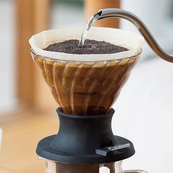 コーヒー粉をお湯に浸漬(しんし)してから抽出するドリッパー。スイッチを押してドリップするのでどなたにでも均一な抽出が可能です。V60ペーパーフィルター03タイプ40枚付き。 ■安心・安全・環境保全のモノ作り