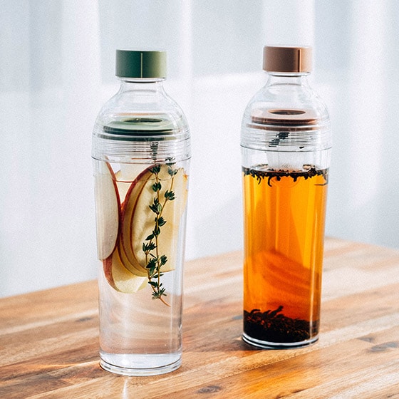 飲み口と本体はPCT樹脂で、BPA FREE・透明性・耐熱性・衝撃強度のある安心素材です。フィルターが付いているのでお好みの水出し茶やフルーツティーを持ち歩くことができます。お好みの飲み物や水出し茶・フレーバーウォーターを持ち歩けます。フィルター付きなので抹茶シェイカーとしてお使いいただけます。飲み口の内側にフィルターメッシュがセットされています。食洗機使用可。電子レンジ使用不可。