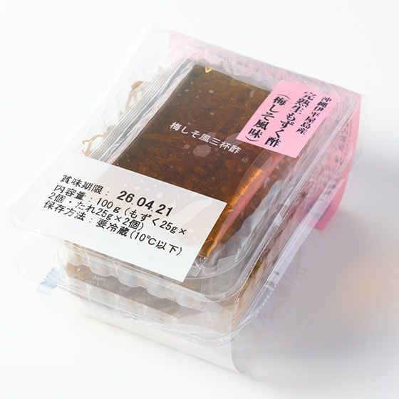 きなこ様 投稿日:2026/4/20 とても美味しかっ 今まで食べていたもずくとは食感が違い驚きました。コリコリして、添付の梅酢もしょっぱくなく美味しいです。少し値段が高めですがその価値は十分あります。