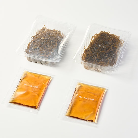 もずくは洗浄してありますので、洗わずにそのままお召し上がりいただけます。 添付の調味酢を入れ、良く絡めてお召し上がりください。 |