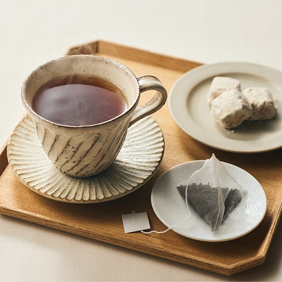 抽出性の良い三角ティーバッグを使用しており、マグカップやマイボトルでのご利用にもおすすめです。水出しもかんたんに作れます。