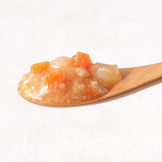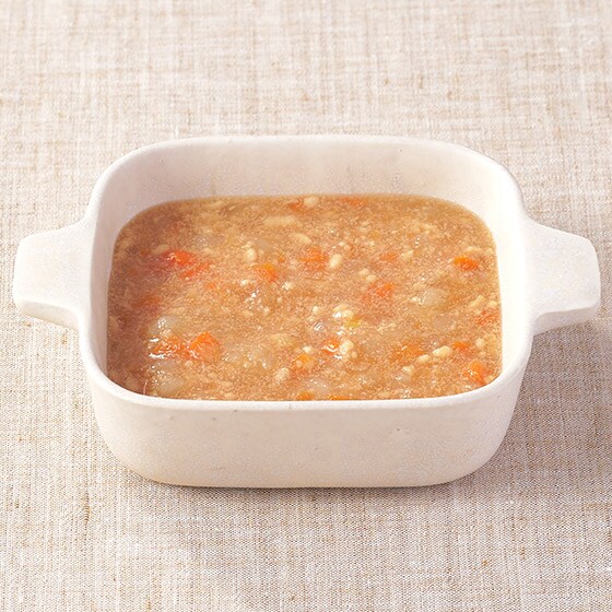 離乳食後期の9-11ヶ月頃から利用できる冷凍ベビーフードです。鶏ひき肉と野菜をまろやかなミネストローネ風に。1袋が1食分の目安量です。 ■お召し上がり方