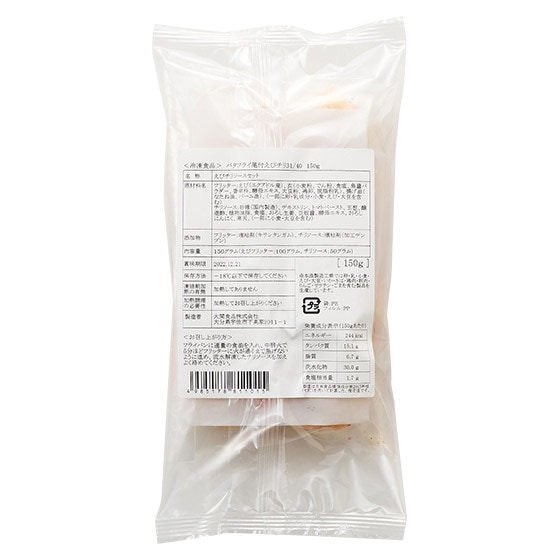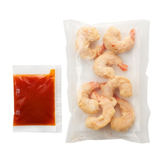 | 原材料 | フリッター:えび(フィリピン産、ミャンマー産、エクアドル産)、衣(小麦粉、でん粉、食塩、魚醤パウダー、香辛料、酵母エキス、大豆粉、鶏卵、脱脂粉乳)、揚げ油(なたね油、パーム油)、(一部に卵・乳成分・小麦・えび・大豆を含む) チリソース:砂糖(国内製造)、デキストリン、トマトペースト、玉葱、醸造酢、植物油脂、食塩、おろし生姜、豆板醤、酵母エキス、おろしにんにく、寒天、(一部に小麦・大豆を含む) 添加物 フリッター:増粘剤(キサンタンガム)、チリソース:増粘剤(加工デンプン) |