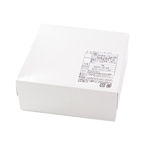| 原材料 | 小麦粉(国内製造)、バター、りんごプレザーブ(りんご、砂糖、果糖ぶどう糖液糖)、砂糖、鶏卵、アーモンド、栗甘露煮、食塩、ラム酒/酸味料(クエン酸)、ビタミンC、乳酸カルシウム、香料、(一部に小麦・乳成分・卵・りんご・アーモンドを含む) |