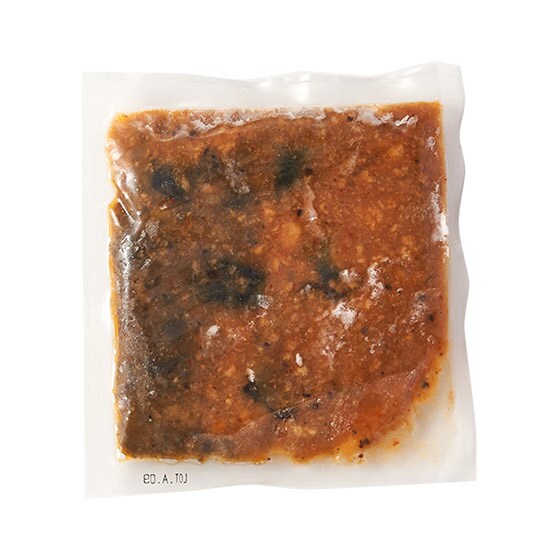 具材がしっかり入った麻婆ナスで、温めるだけのかんたん調理です。甜面醤を使用し、野菜の旨みが抜群で、豆板醤の辛みの効いたひき肉を思わせる本格的な味わいをお楽しみいただけます。