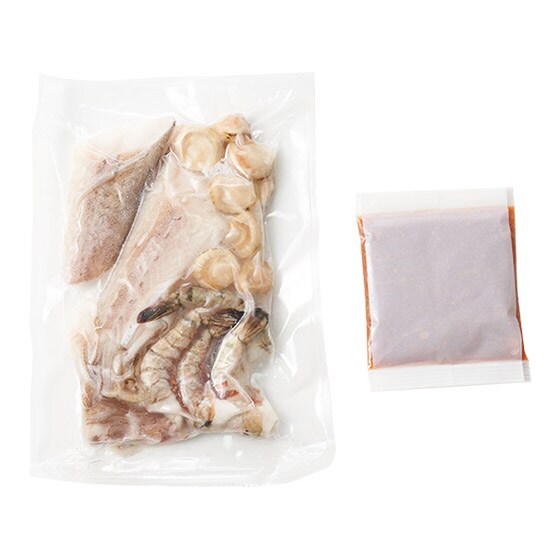 シーフードミックスと濃縮スープは袋のまま冷蔵庫で半日解凍するか、流水にあてて解凍してください。鍋に解凍したシーフードミックスと水500cc、カットした野菜(玉ねぎ、きのこ、パプリカなど)、スープ1袋を入れて蓋をして中火でシーフードミックスに火が通るまで加熱してください。