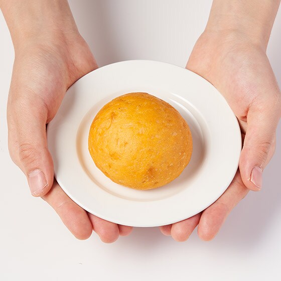 ■国産にんじん「こいくれない」をたっぷり練り込んだやさしい甘さのオレンジ色の丸パン。