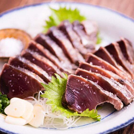鮮度のよいかつおを藁焼きで焼き上げたかつおのたたきは、香ばしく臭みがないため、塩で食べると素材の味を存分に味わうことができます。 ■お召し上がり方