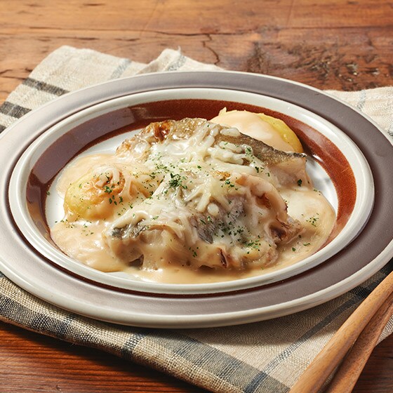 ■鱈とグリルポテトとチーズのホワイトソース仕立て