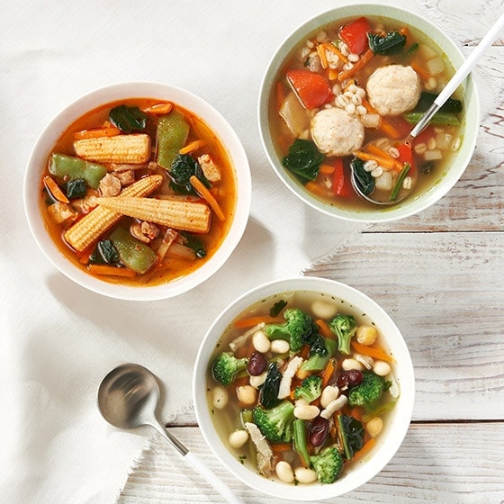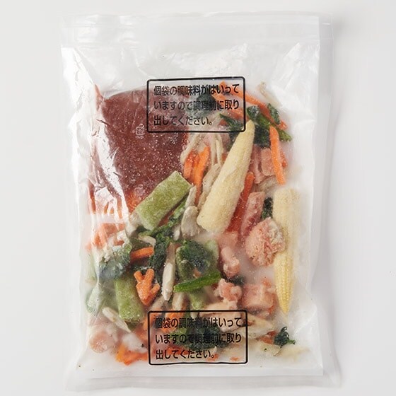 1食分の食べきりサイズに仕上げていますので、大人一人分の朝食やランチにおすすめです。 しっかり噛んで楽しめるように、具材を大きめにしてあります。 用意するものは水とわずかなオイルだけで、事前に解凍の必要もないため、忙しい時でもかんたんに作れます。 ■お召し上がり方