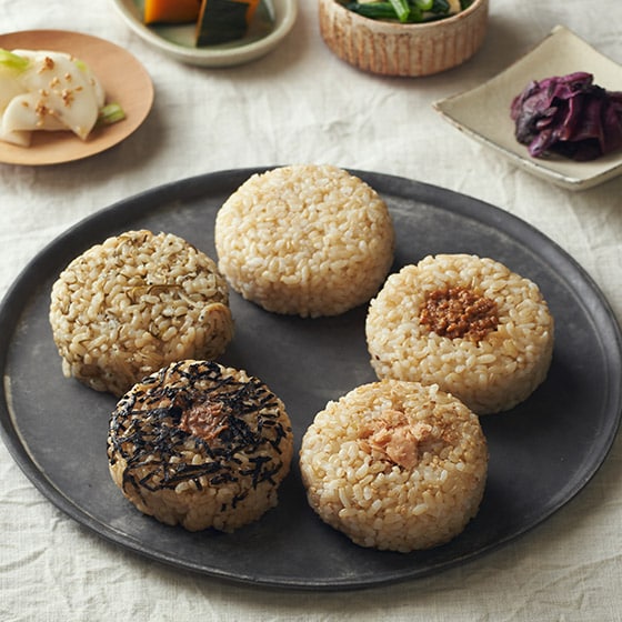 食べたいけど炊くのが手間、家族は玄米を好まない、玄米の独特の食感が苦手…そんな悩みを解決。玄米を飽きずに毎日食べられる手軽な5種のおにぎりアソートにしました。米どころの宮城県産「ひとめぼれ」の玄米をスチームクリーン製法で食感はふっくら、甘みと栄養価もアップさせた進化型玄米。スチームクリーン加工をし、加工前の玄米と比べGABA(γアミノ酪酸)が約4倍に。 ■飽きずに食べられる5種のアソート