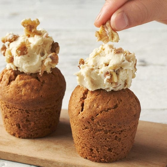 別添のチーズクリームにローストしたくるみを混ぜて、ケーキの真ん中に高くトッピングしてください。 チーズクリームはクリームチーズにバターとてんさい糖をあわせた濃厚な味わいに、ローストすることで香ばしい香りとざくざくと食感のあるクルミがアクセントになり、ケーキとの相性抜群です。 ■お召し上がり方