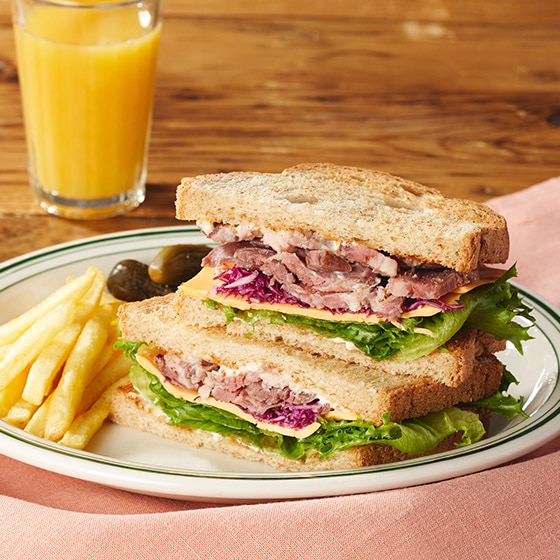 素材の味が引き立つようシンプルに味付けを施し、低温でじっくりと加熱してしっとりとした食感のローストビーフに仕上げました。 ■切らずにそのまま多様アレンジ