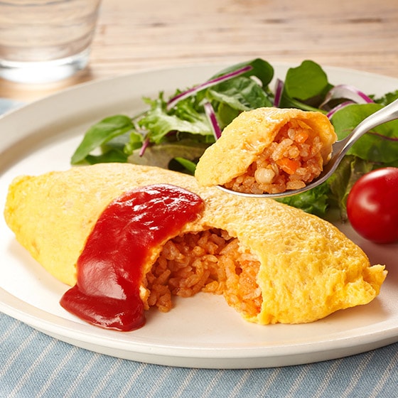 卵シートはふんわりとした食感に仕上げました。 チキンライス製造の際に、玉ねぎ・ごはん・トマトケチャップを直火で炒めることにより、ほど良い甘みと酸味をきかせた味に仕上げました。 ■お召し上がり方