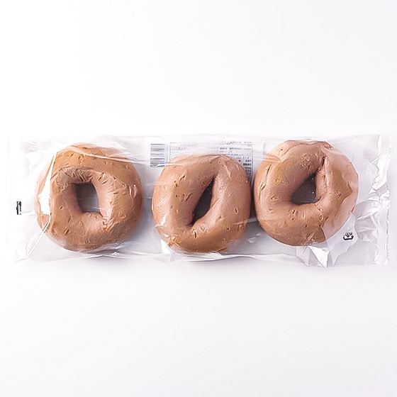ベーグル本来の製法である「焼く前に85度以上に沸いたお湯でゆでる」という工程を忠実に守って、一つひとつていねいにボイルしてから焼き上げています。この工程によって、専門店ならではの他にはないモチモチ感や香りの豊かさ、ベーグル表面のパリッとした張りが生まれるのです。 ■お召し上がり方