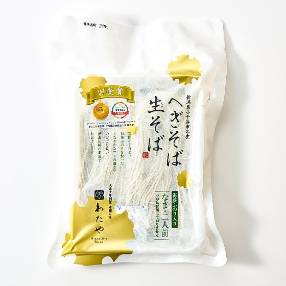 「へぎそば」は、つなぎに海藻の布海苔を使う新潟伝統のそば。 歯切れの良さとツルツルとしたのど越しが特徴です。 打ちたてと変わらぬ風味・食感をめざし、打ちたての生そばをそのまま冷凍しました。 ※本品に黒または緑の点が見られることがありますが、粉またはつなぎのふのりですので安心してお召し上がり下さい。 ■おいしさ長持ち