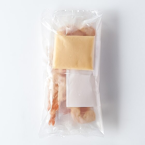 フライパンに適量の食油を入れ、中弱火で5分ほどフリッターに火が通るまで焦げないように温め、火を止めた後に流水解凍したマヨソースを加えよく絡めてください。 ソースを加えた後は飛び跳ねることがあるのでご注意ください。