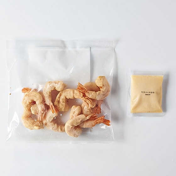 大きめのえびのフライと特製マヨソースをセットにしました。 尾付きのえびに分厚い衣をつけることでソースとの絡みがよく、より味わいのある仕上がりになっています。 サラダに乗せて特製ソースをかけてもおいしくお召し上がりいただけます。 もちろん、そのままごはんに乗せたり、おにぎりの具材にしてもおいしいです。 (セット内容:フリッター180g、マヨソース50g) ■お召し上がり方