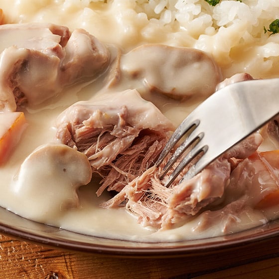 カレー、シチュー、肉じゃがなどの煮込み料理にご利用いただけます。お肉がやわらかくなるまでじっくり煮込んでありますので、すぐにご利用いただけます。 |